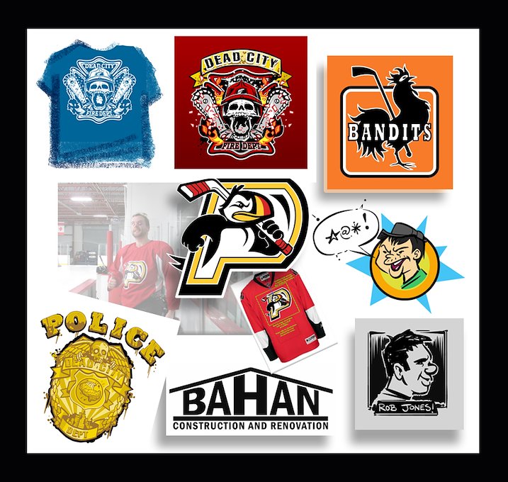 Random freelance logo designs for local businesses and hockey teams, including logo designed for my Hockey Club, The Victoria Puffins.