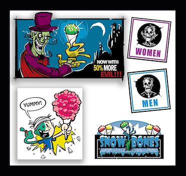 Character concept designs, for Mondo's "Don't Feed the Humans" series