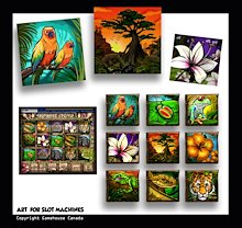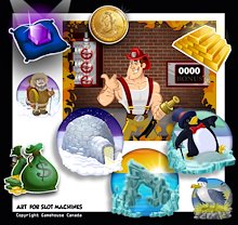 Game assets designed for mobile games/ slot machines while at Backstage Games/ Gamehouse Canada