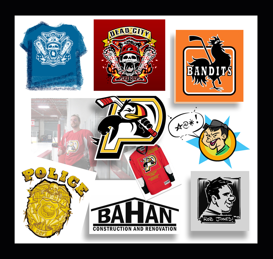 Random freelance logo designs for local businesses and hockey teams, including logo designed for my Hockey Club, The Victoria Puffins.