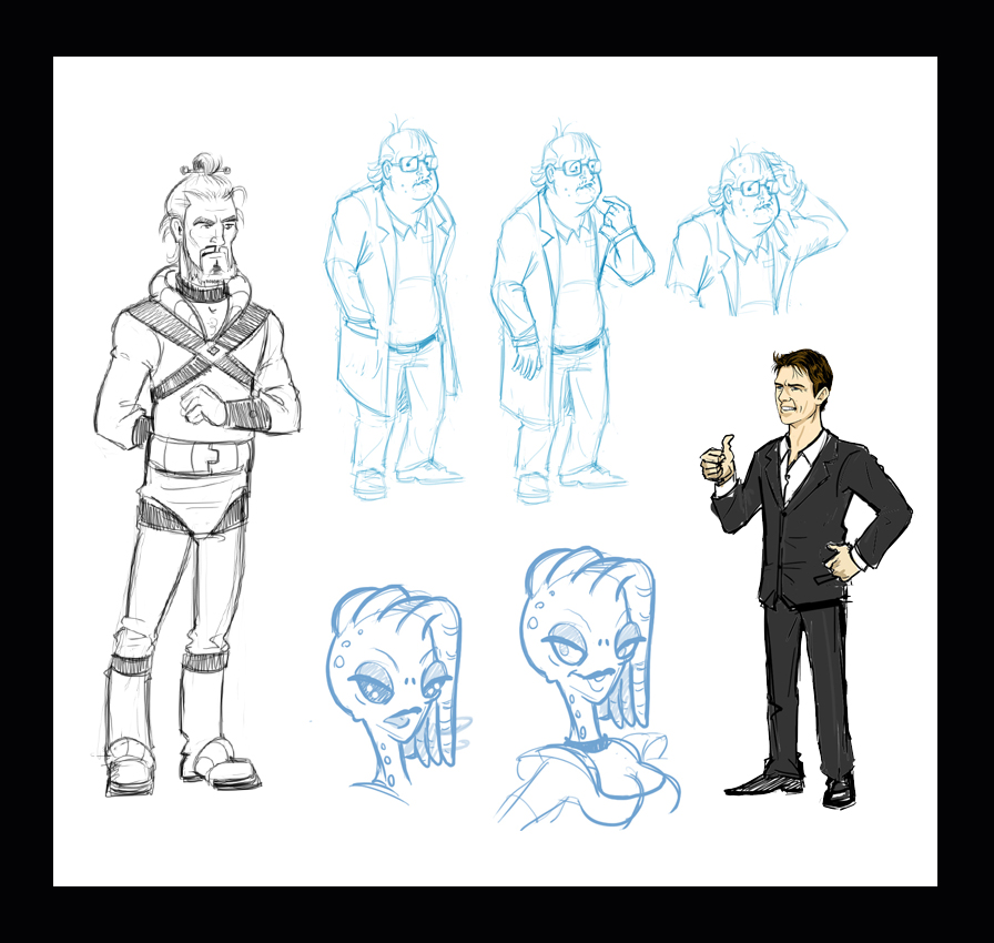Aliens, a Scientist and Tom Cruise character designs, for Mondo's, "Don't Feed the Humans" series