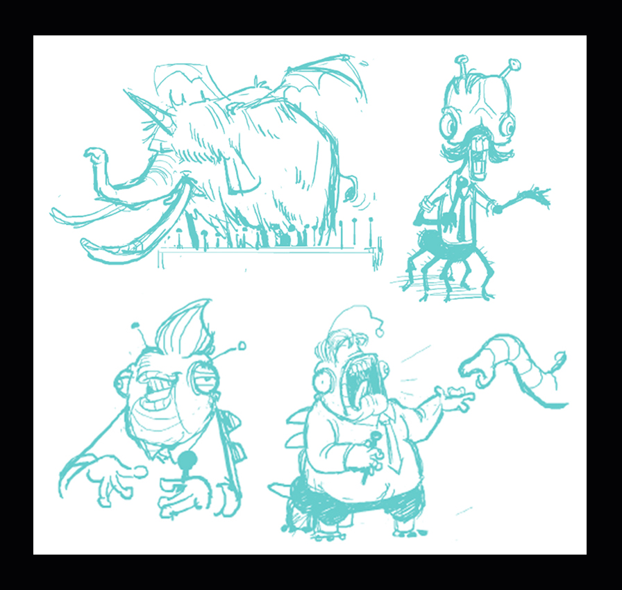 Character concept designs, for Mondo's "Don't Feed the Humans" series