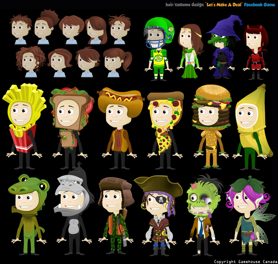 Approved hair/costume design while at Backstage Games/GameHouse Canada in 2012. Assets for Facebook game, "Let's Make A Deal."