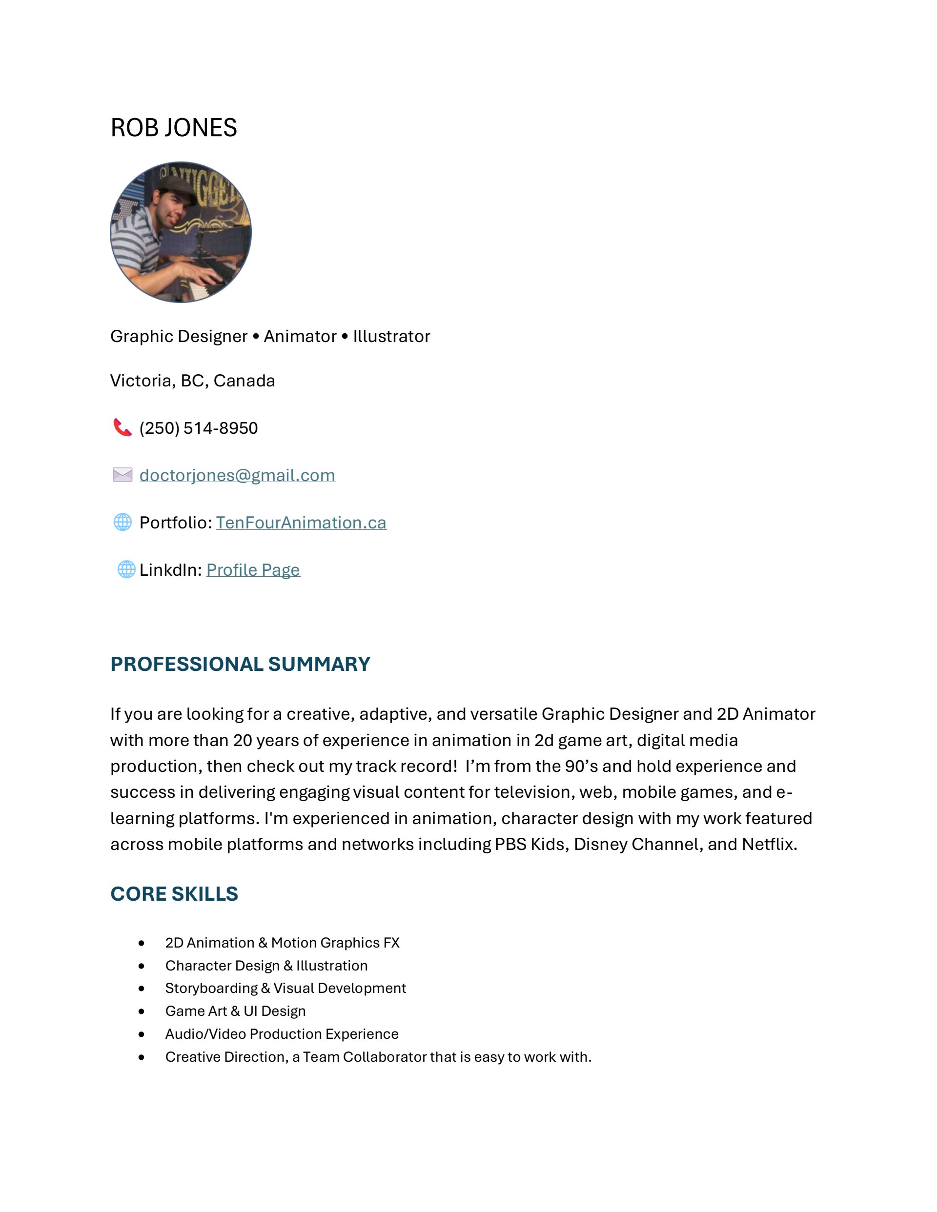 Rob Jones grew up on Vancouver Island as the middle brother of 5 boys through the 80's and 90's, watching cartoons and toy commercials! Interests in animation started early, entertaining classmates with flip books created from school textbooks. He was the first kid on his block to own a video camera and would make films starring his action figures.