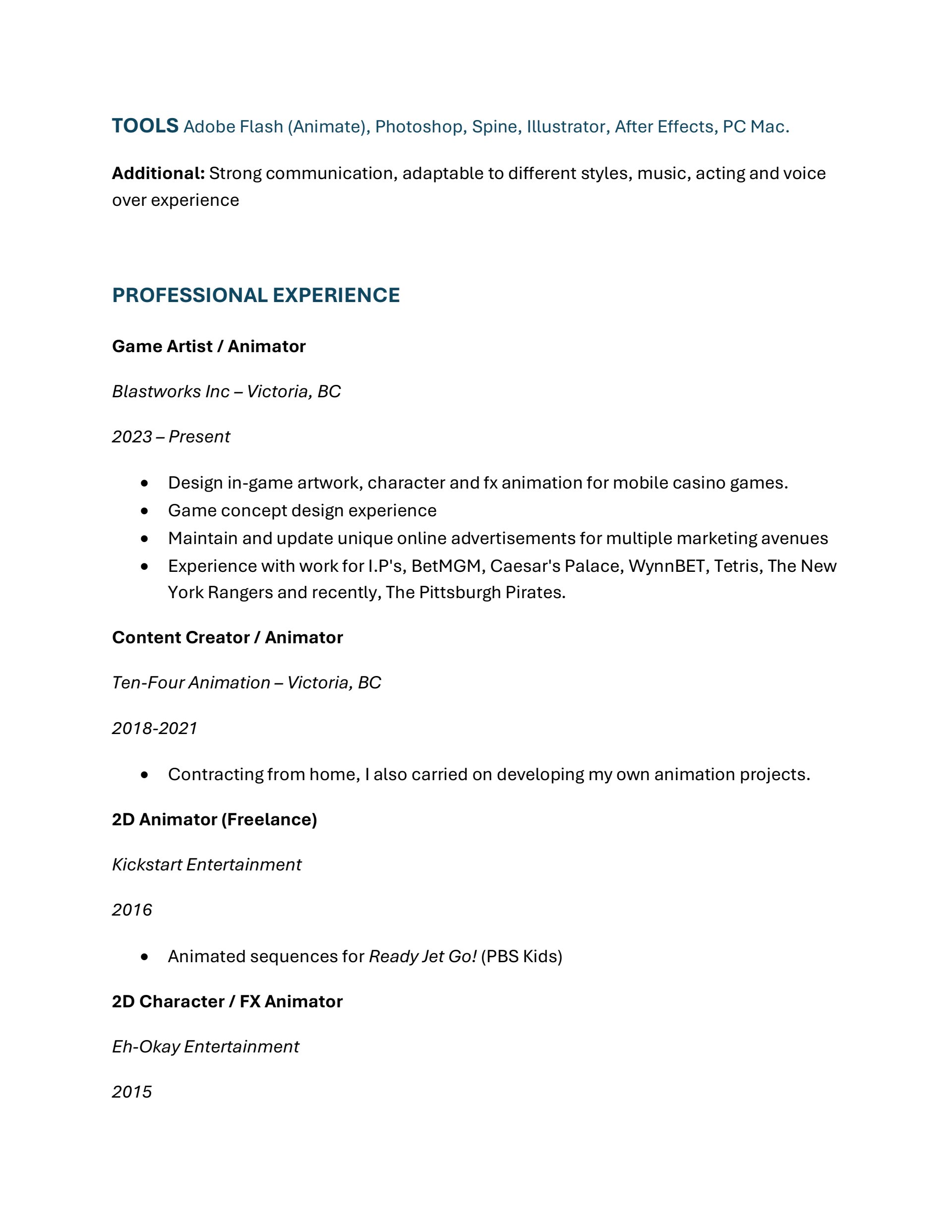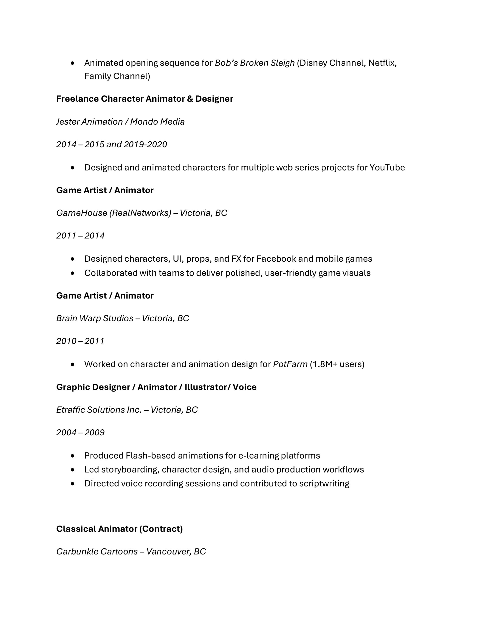 social/mobile game development, animated content for WEB and TV and more. His animation work